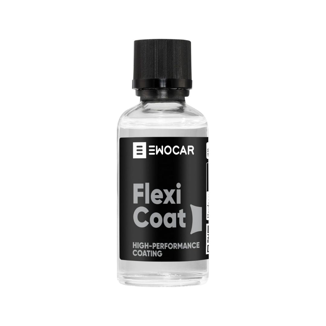 EWOCAR FlexiCoat is a professional-grade ceramic coating for exterior/interior plastics, trim, bumpers, rubber seals, and textured surfaces. It revives original colour depth, creates a slick hydrophobic barrier that repels dirt/grime, and shields against fading, oxidation, cracking, and harsh chemicals (pH 2–13) — keeping surfaces looking new longer with easy maintenance.